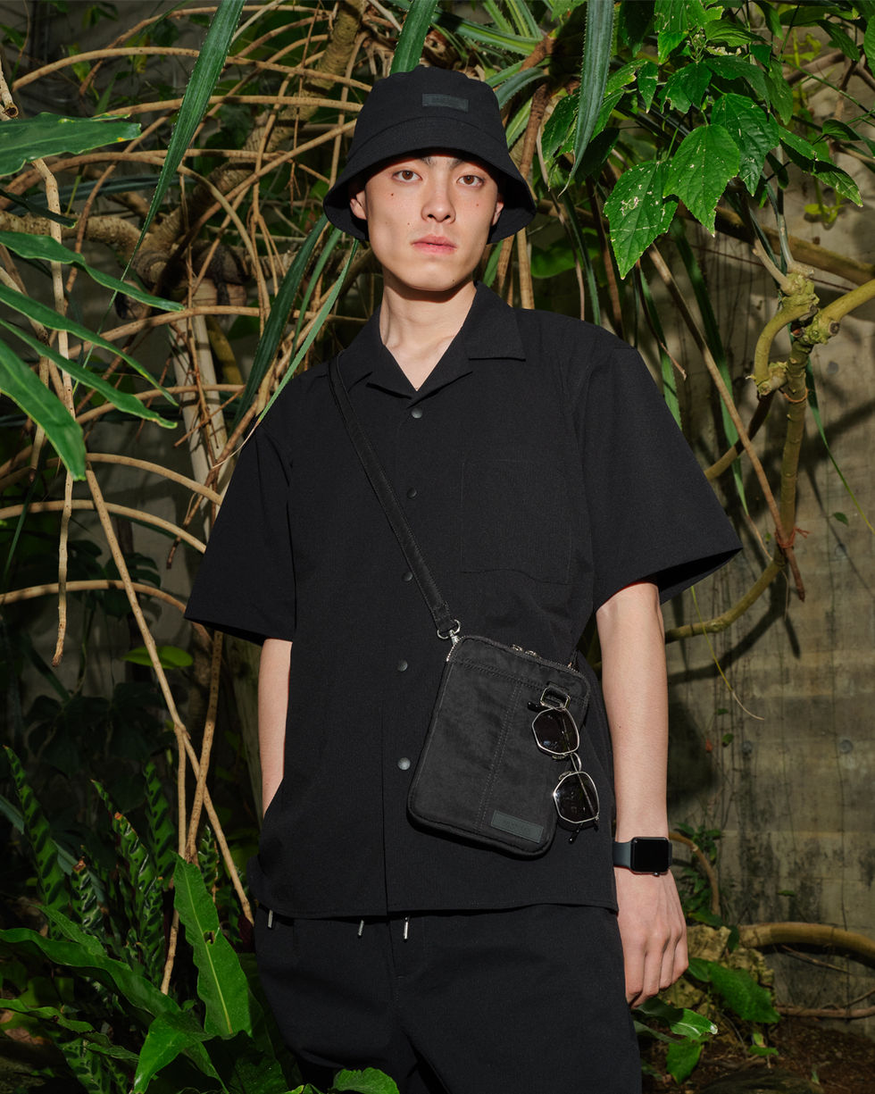 BARNEYS NEW YORK オリジナルコレクション、若年層向の企画『PACK & GO』のビジュアル撮影のディレクション。ビジネスカジュアルでもプライベートでも使用出来る仕様の良さを引き出す為にビル街とアウトドアを連想させる植物園にて撮影。